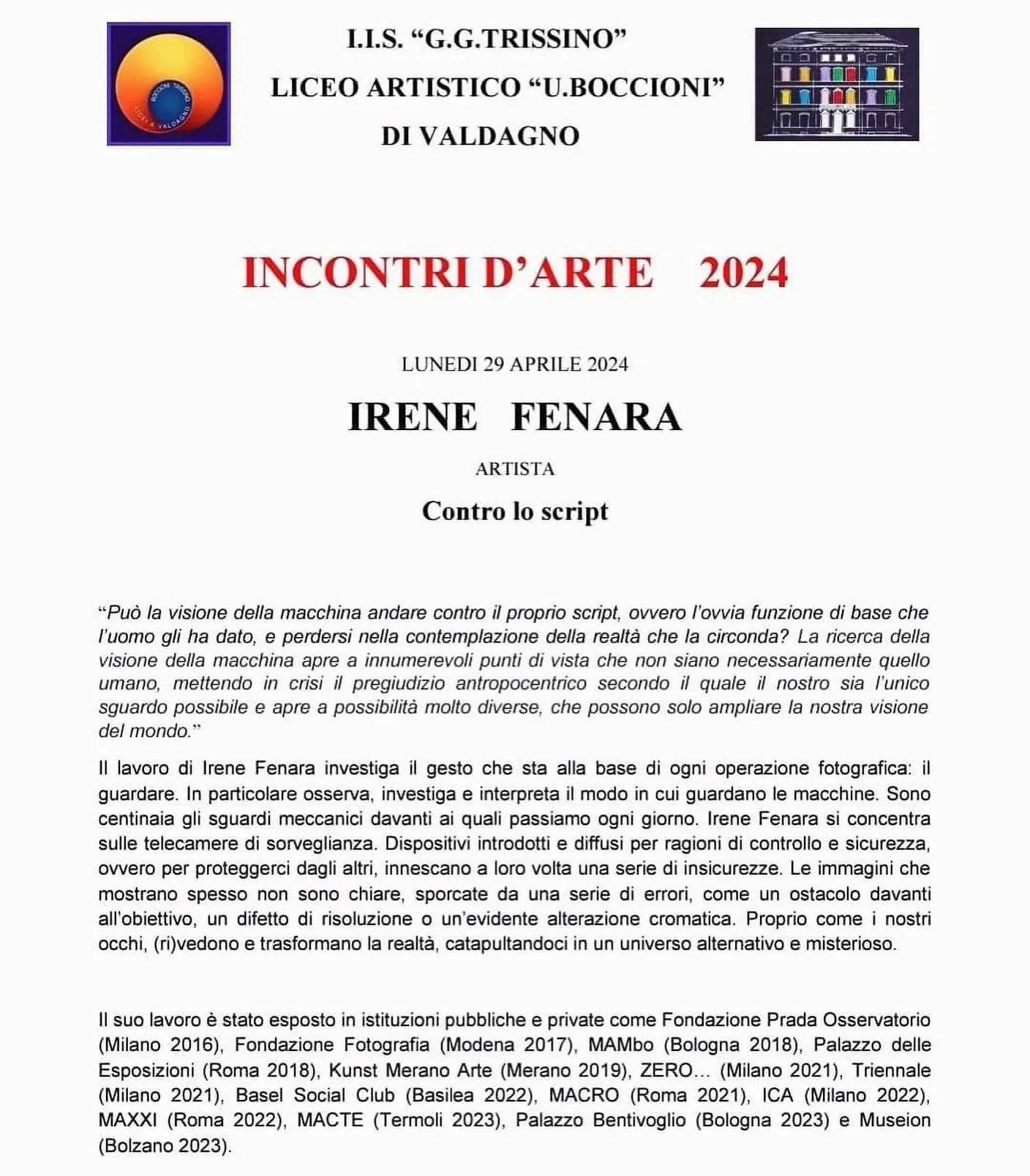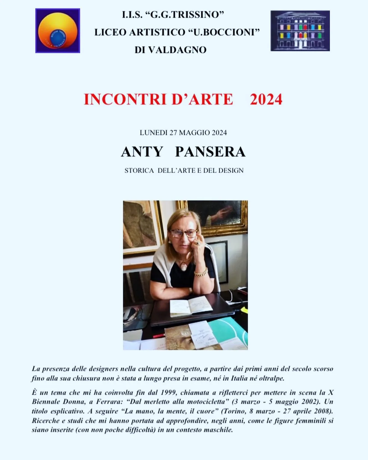Grande interesse e partecipazione per i due Incontri d’Arte 2024, che hanno permesso a studenti e docenti di dialogare con Irene Fenara, artista, e con Anty Pansera, storica e critica del design.